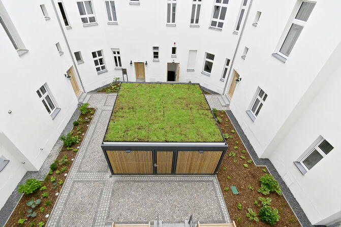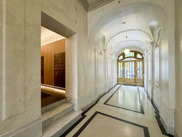 Unser Gebäude in der Giesebrechtstraße beherbergt einige Läden, Büros und 13 Wohnungen. Viele typische Altbau-Stilelemente wie Stuck, kunstvoll gefertigte Holztüren und ein historisch anmutender Aufzug machen aus dem Gebäude ein echtes Schmuckstück. Einige der Wohnungen verfügen sogar über einen Balkon.